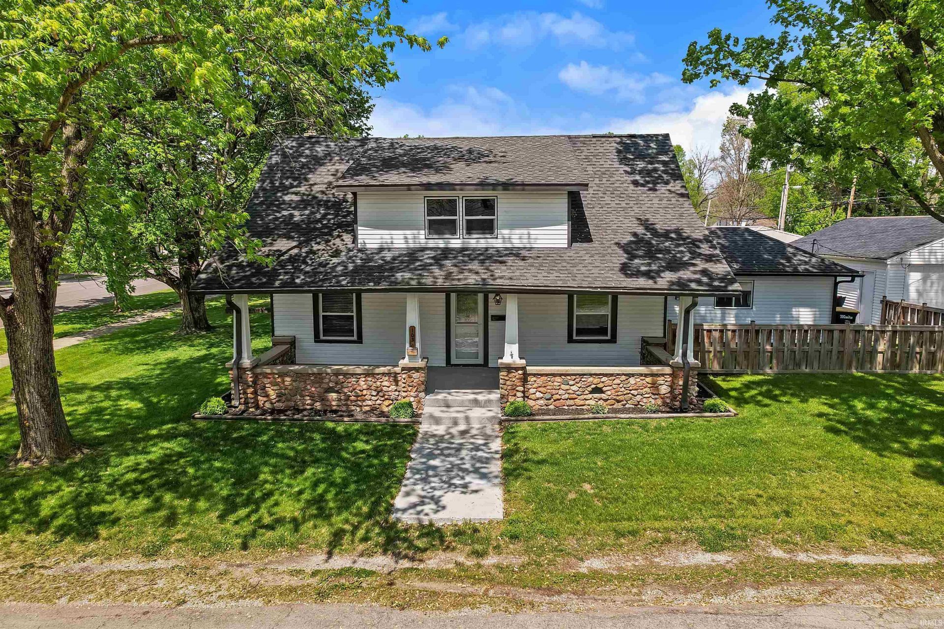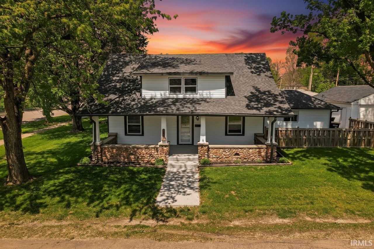 Located in town, this well-maintained home offers 3 bedrooms, 2 bathrooms, and 1,812 sq. ft. of living space. You'll love the large 33x9 covered front patio?perfect for relaxing, entertaining, or enjoying your morning coffee. It also offers a great spot to watch the town parade go by. The property features a fenced-in yard, ideal for pets or outdoor enjoyment, along with a spacious 24x29 detached garage providing excellent storage, workshop space, or parking. This home has been extensively updated, giving peace of mind to the next owner. Recent improvements include newer windows, water heater, furnace, siding, remodeled bathrooms, patio door, new carpet upstairs, refinished hardwood flooring throughout, updated interior and exterior doors, dishwasher, refrigerator, plumbing, and resurfaced concrete on the front porch. Conveniently located close to parks and downtown, this home offers easy access to local amenities, community events, and festivals?all within walking distance. Enjoy small-town living with modern updates and a location that truly stands out. Move-in ready and packed with value?don't miss this opportunity!